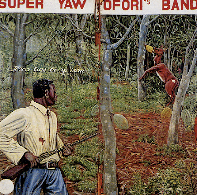 Here we have posters of three bands, A.B. Crentsil's Ahenfo Band (formed after Sweet Talks), the City Boys Band, and Super Yaw Ofori's Band (which I don't know much about). Below is a short excerpt of a nice review from the journal American Anthropologist that provides some more background information. I encourage reading the full article, which you may download here as a PDF. Click "Read More" to look at more of the paintings and listen to Super Yaw Ofori's Band.